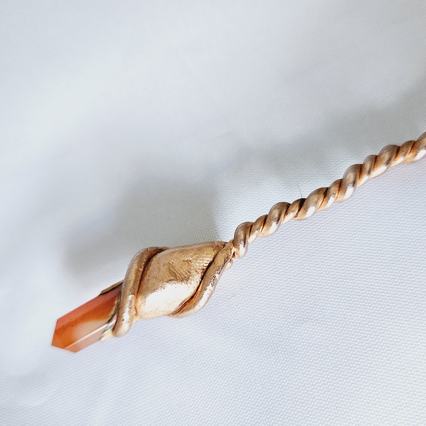 Featuring a Carnelian point with a whimsical twisted handle and pour spout bowl.