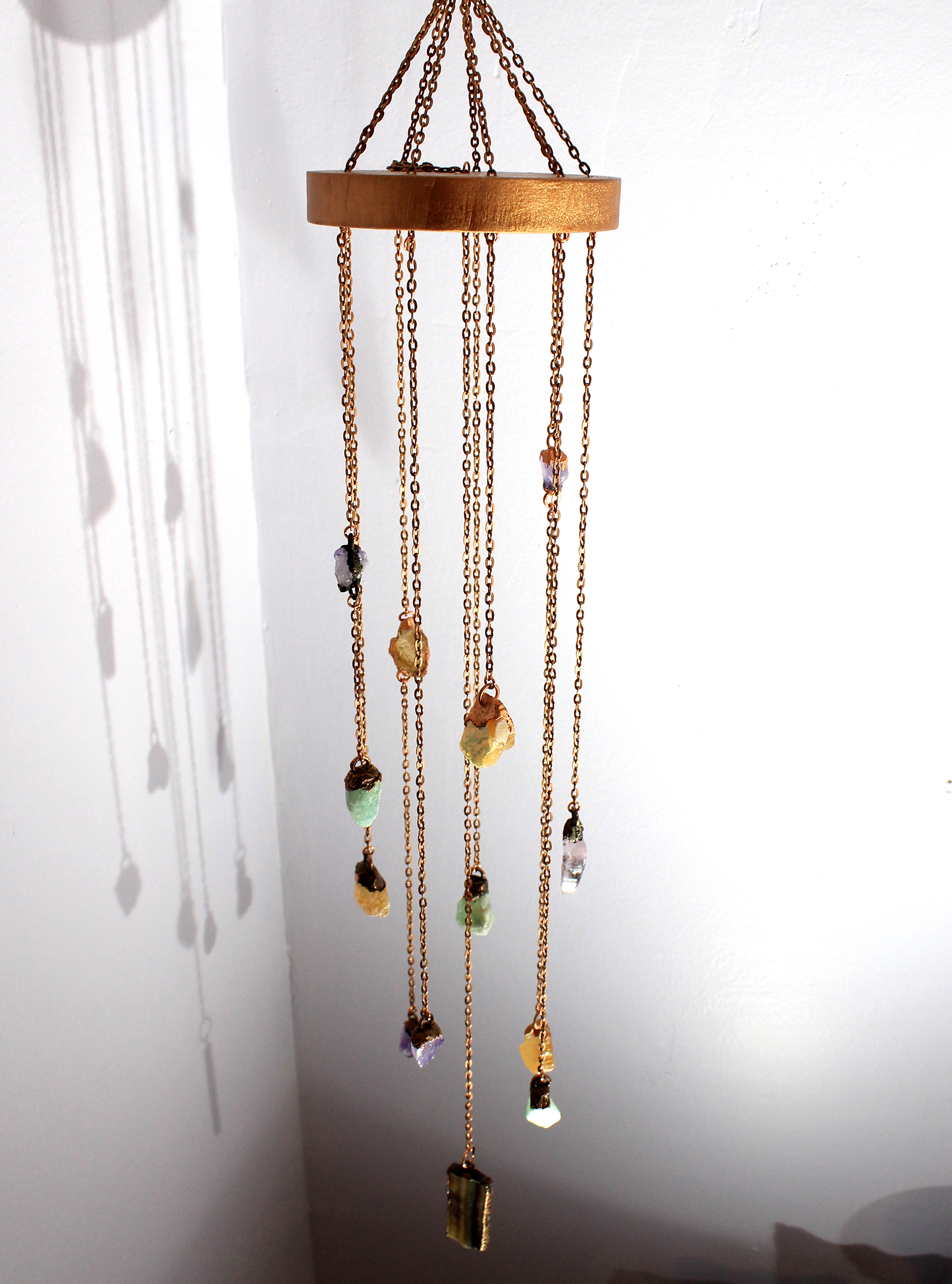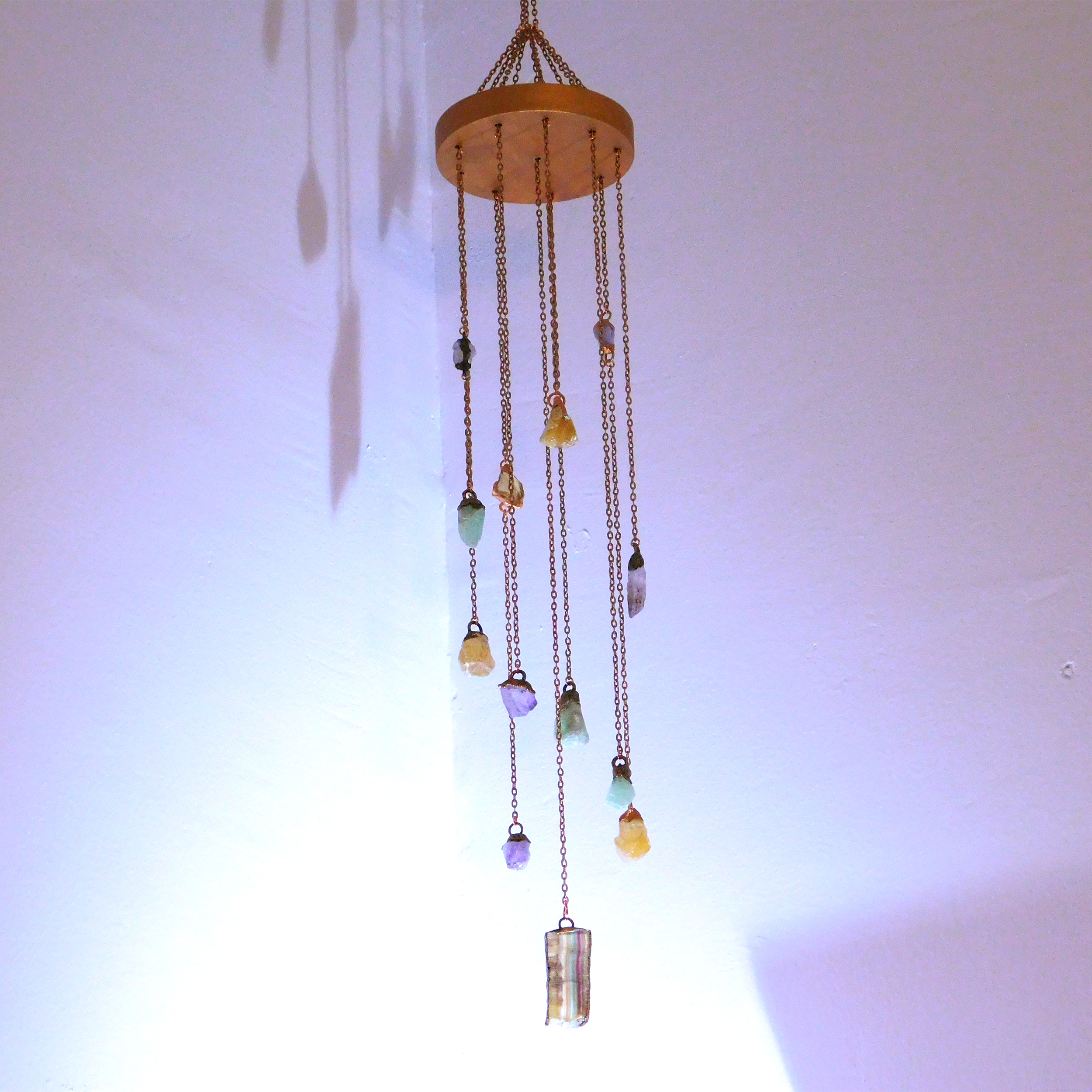 Please remember that the crystals are tiny pieces of the earth and should be handled with care. Please be sure to hang this mobile out of direct sunlight as that may permanently alter the color of the stones.