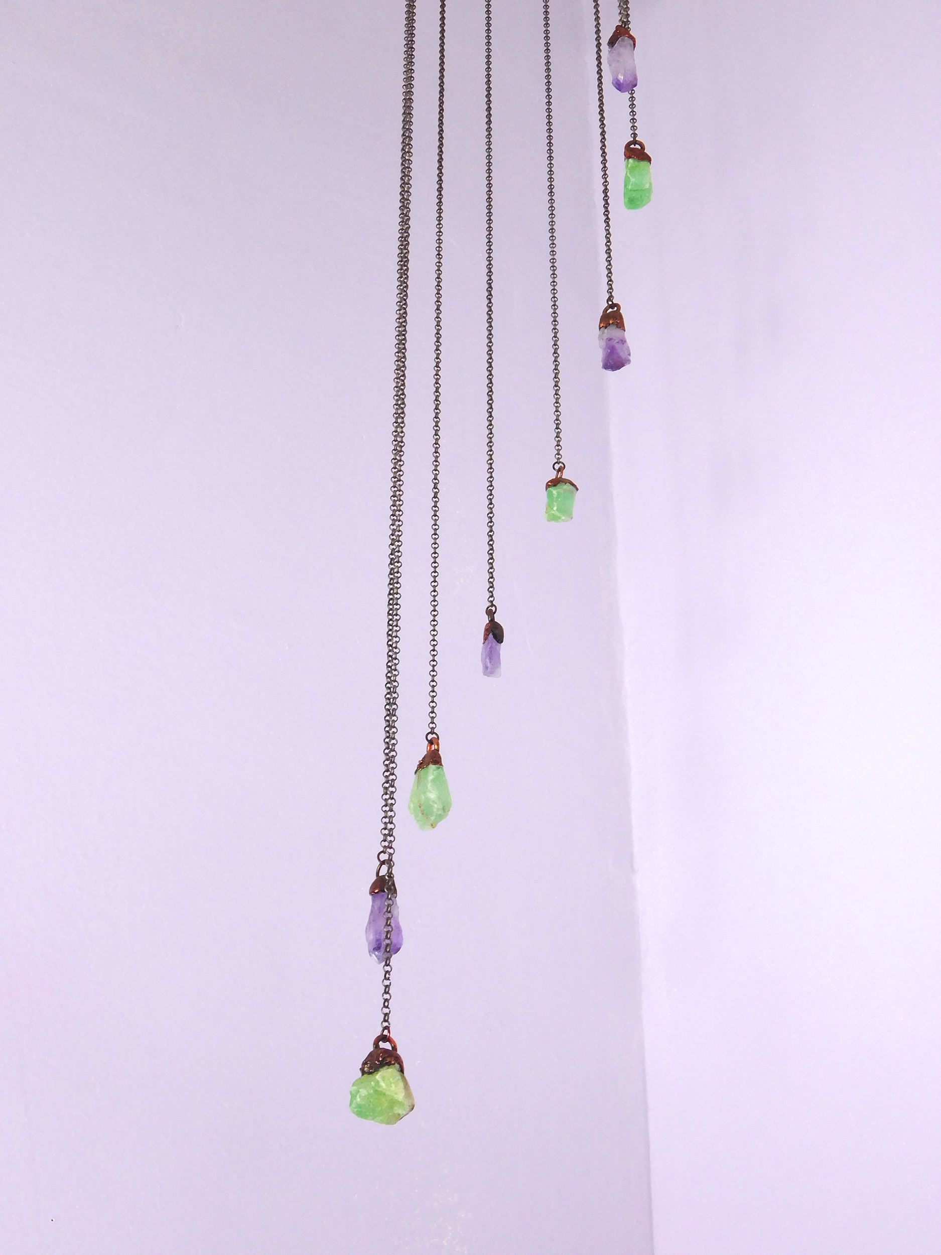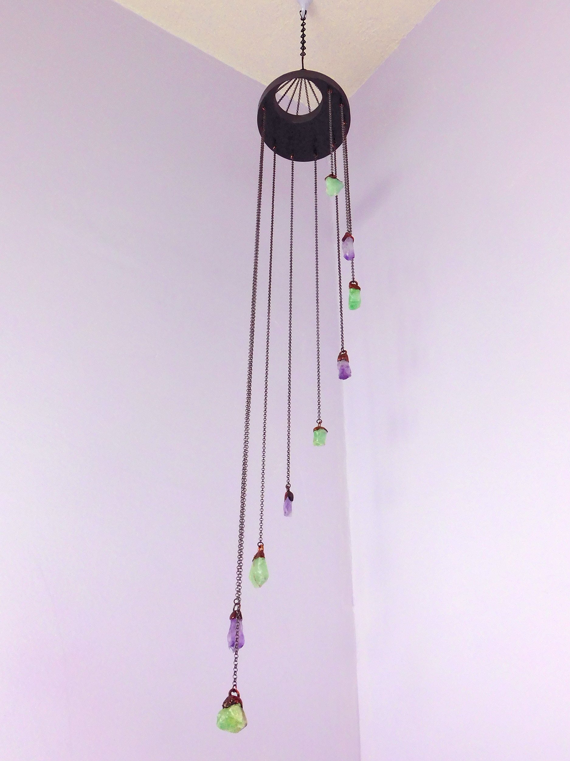 Please remember that the crystals are tiny pieces of the earth and should be handled with care. Please be sure to hang this mobile out of direct sunlight as that may permanently alter the color of the stones.