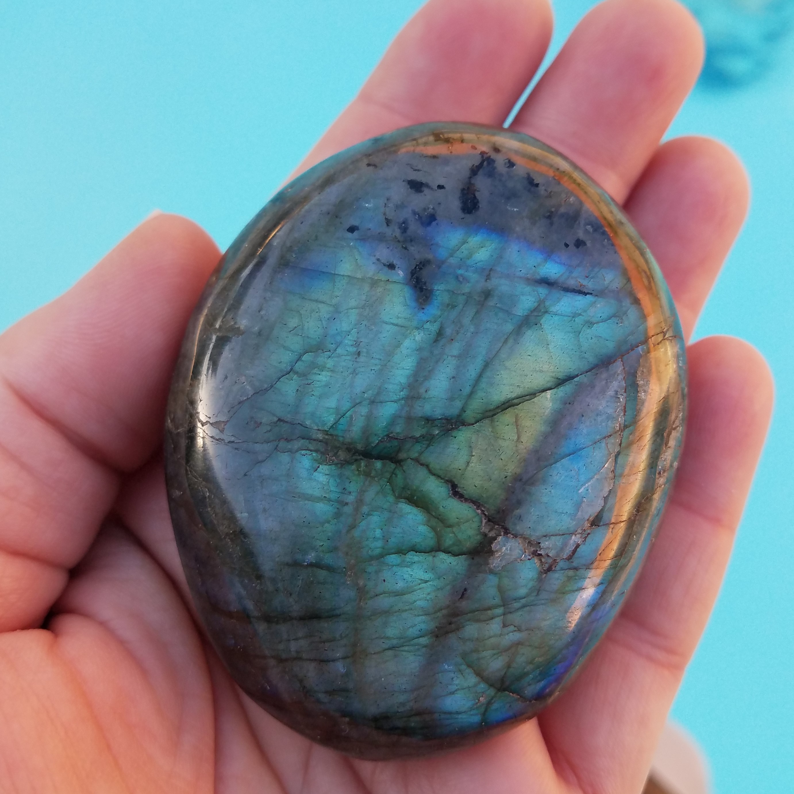 Labradorite is a stone of magic, curiosity, and, creativity. It’s a tantalizing stone that takes you on a journey of color, bringing to light the unknown of a situation.
