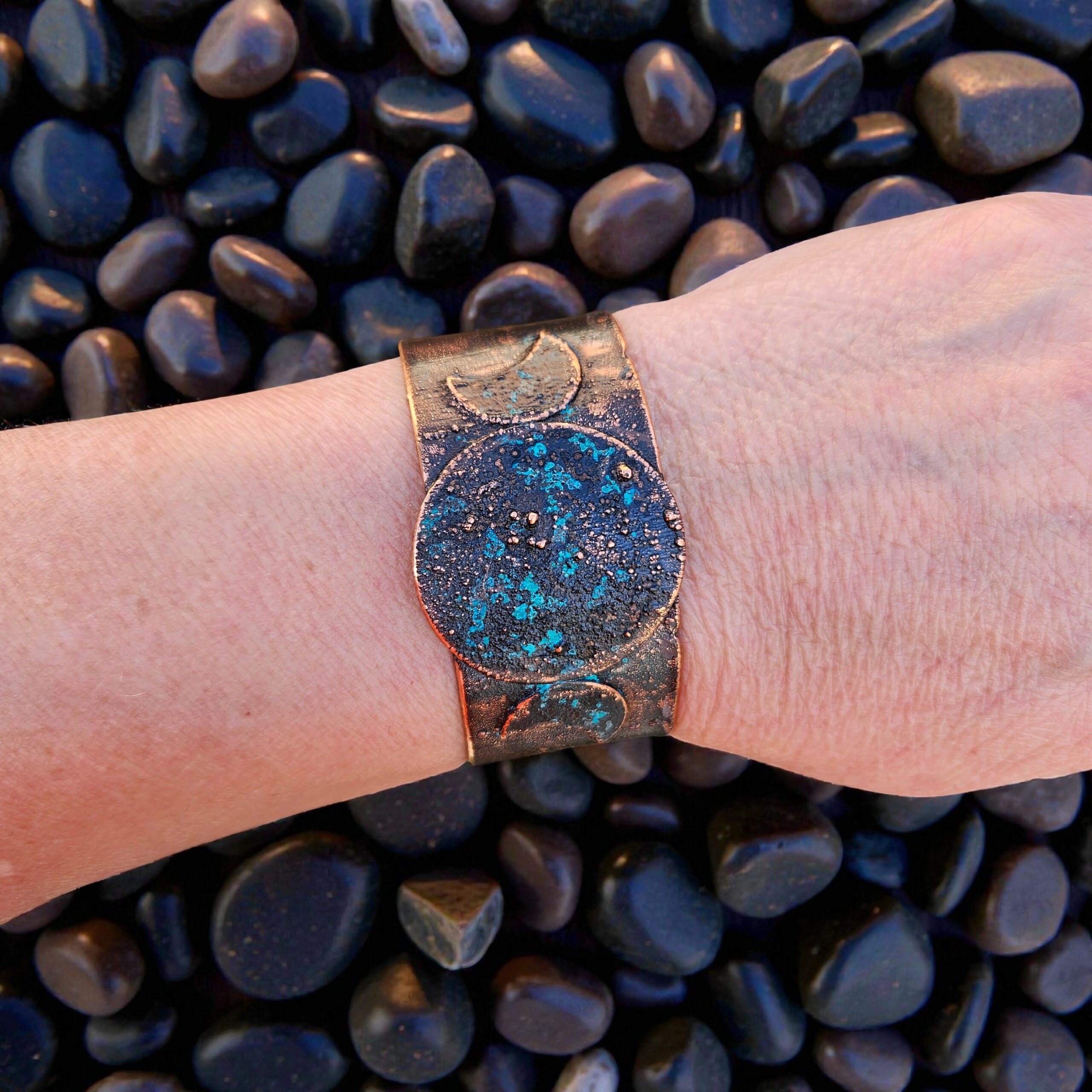 Tied by the Moon: A Ritual for Two These cuffs were designed to be shared. Whether for a mother and daughter, sisters, or soul-friends, the Blue Moon Triple Goddess Cuffs serve as a tether between two hearts. Purchase the Large and Small versions together to create a matching set of celestial anchors that honor your shared journey under the same stars.