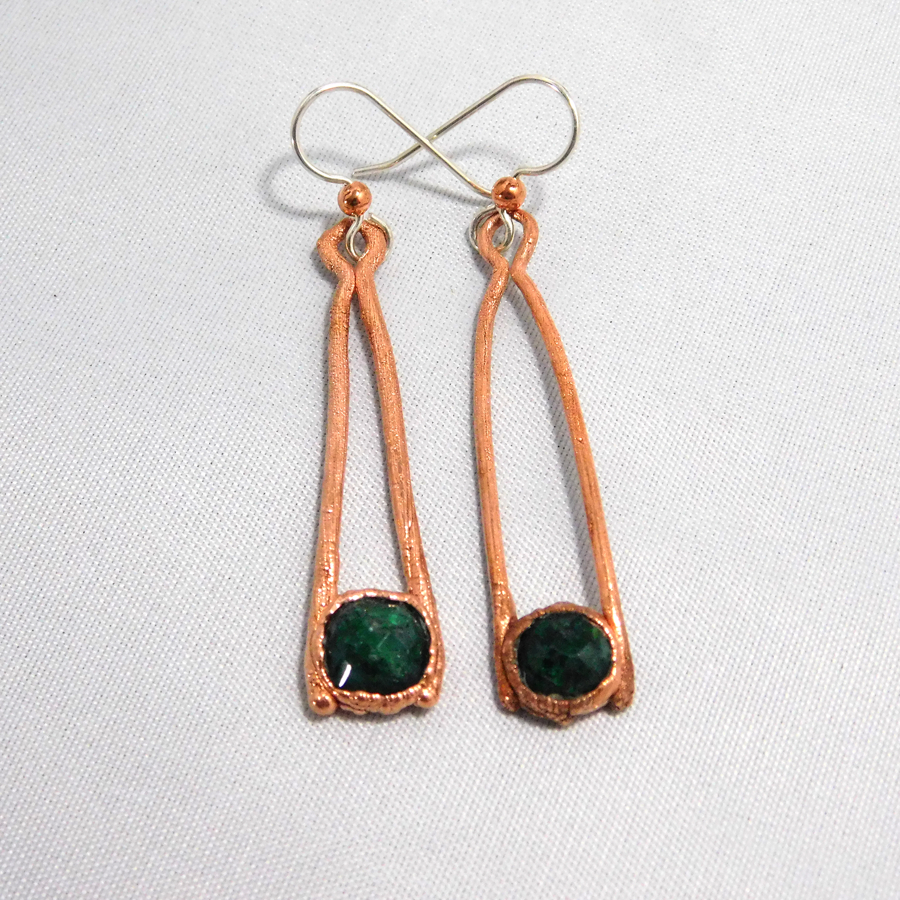 Copper oxidizes and darkens when it comes in contact with the air in the environment (much like sterling silver, but more quickly). Oxidation happens even more quickly in the presence of sunlight, sweat, chlorine (swimming pools), chemicals and cosmetics. Therefore we suggest always removing your jewelry before bathing, swimming, exercising, doing dishes, or applying lotion or makeup. Always keep your jewelry clean and dry.