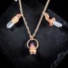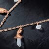 A celebration of the transformative power of the flame. The Hearth Fire necklace represents the warmth of the studio and the sparks of inspiration that fly in the heat of creation. With its raw pink embers and high-frequency crystal guards, it is a grounding talisman for those who carry their own internal fire.