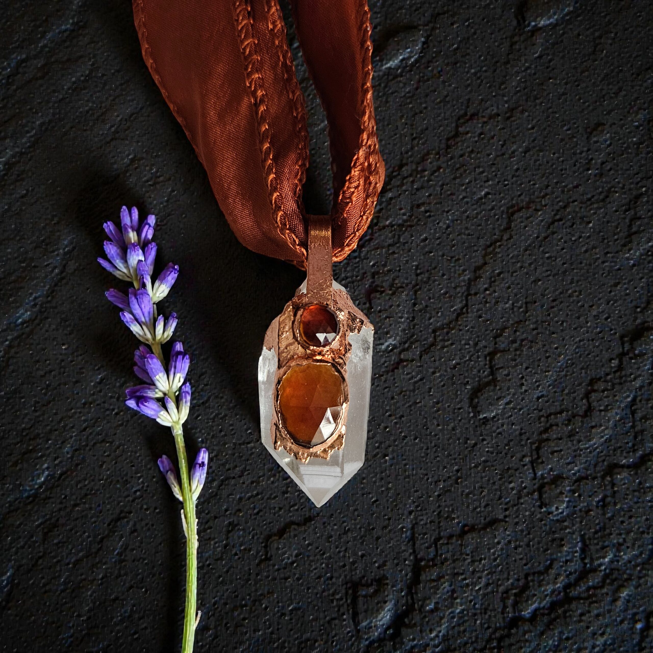 Witness the dance of the Solar Hearth – where the grounding, fiery energy of Hessonite Garnet meets the amplifying clarity of Clear Quartz. This piece was forged to act as a personal hearth, keeping your inner flame steady through the winter months.